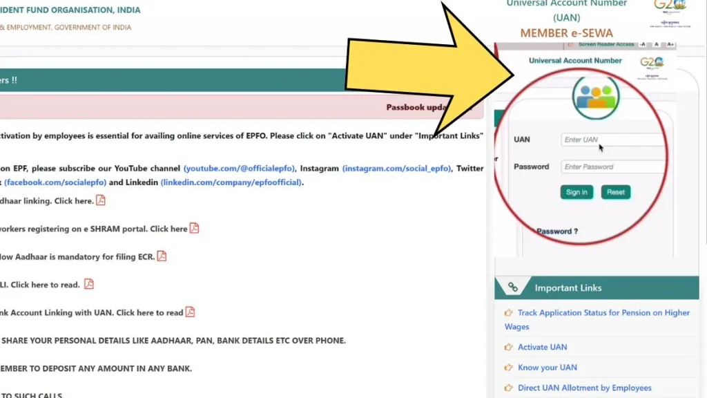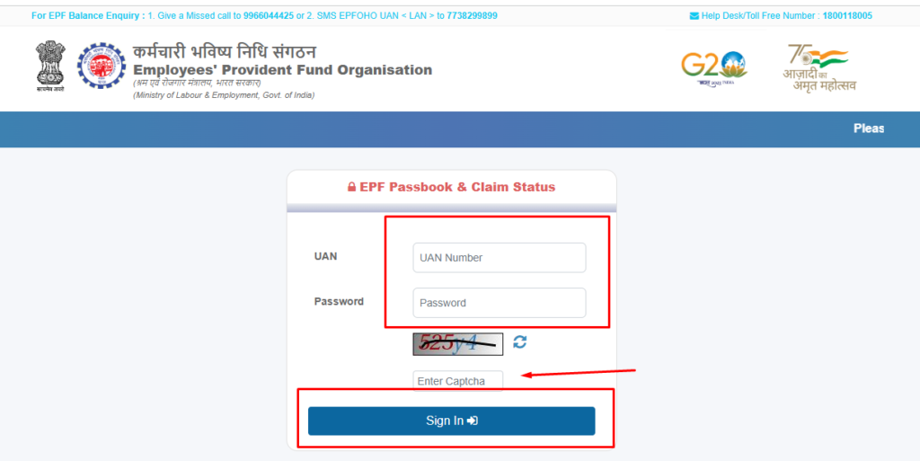 - Log in using UAN and password: Enter your Universal Account Number (UAN), EPFO password, and the captcha code displayed on the screen.