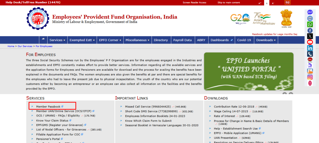 - Go to Services → For Employees → Member Passbook.