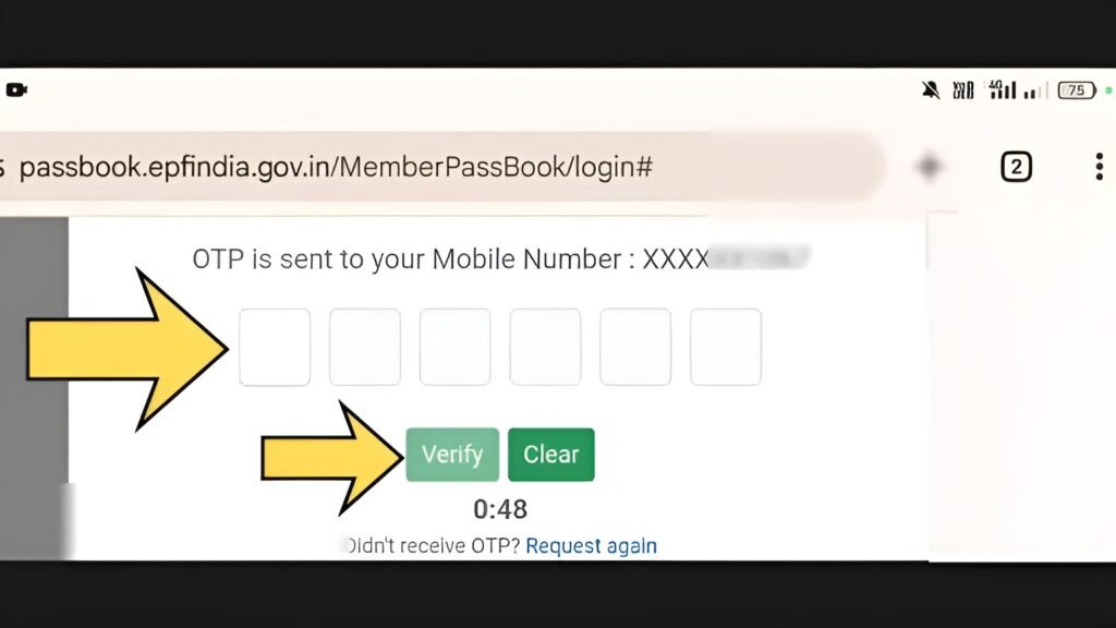 - Verify OTP sent to registered mobile number: An OTP will be sent to the mobile number linked with your UAN. Enter the OTP to complete verification.